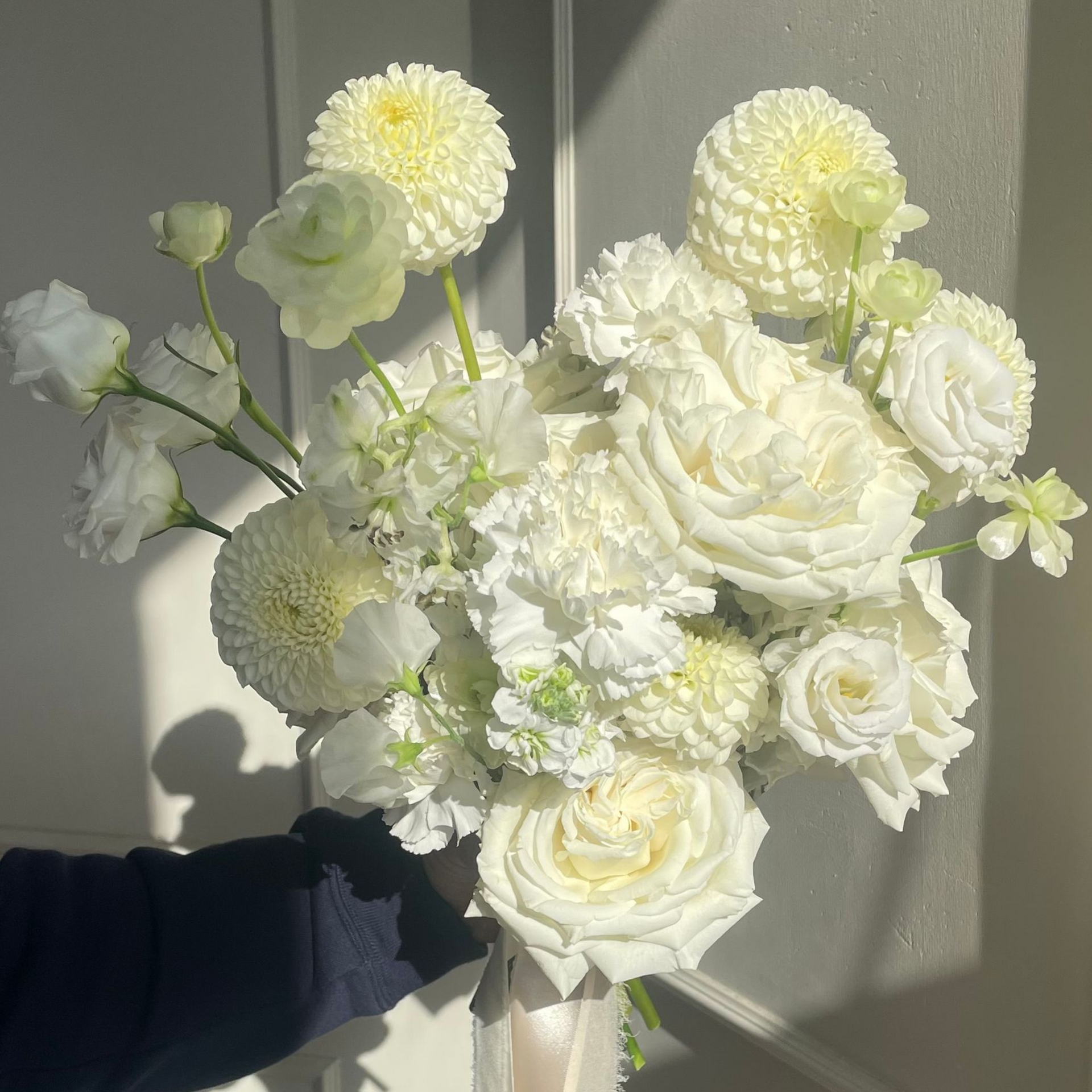 Beautiful modern wedding flowers designed by BUD for you. Tell us your colour palette and we will create a bespoke wedding package in our signature HEY BUD style. All flowers will be delivered to your chosen address on the morning of the wedding.